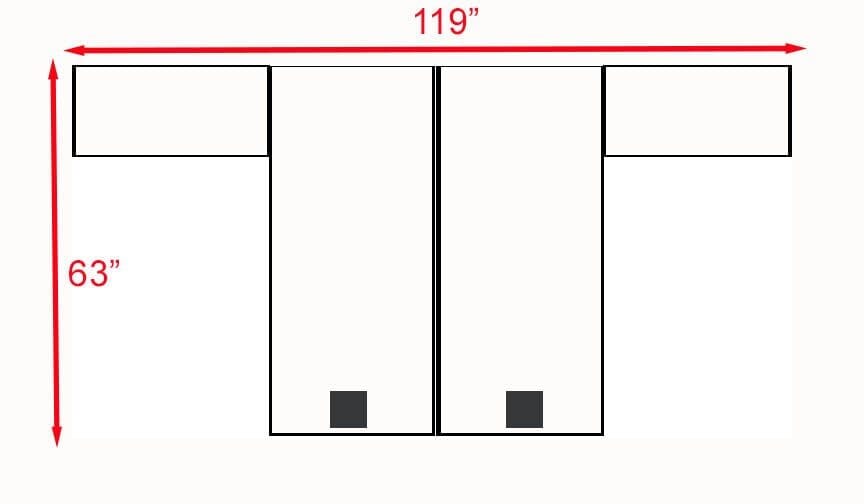 Just like the desk sold above but without overhead storage hutches. Workstation features a two-tone rustic laminate combination: Barn Oak and Driftwood. Each workstation includes a 63"W table desk that offers ample room for daily tasks and technology, ensuring both users have a spacious, comfortable place to work. For quick and convenient storage, each side is equipped with a 32" sliding-door cabinet that keeps everyday essentials within reach while maintaining a clean, organized look. Contrasts Rustic 10' x 5' 2-Person Workstation includes two Y14342, 63"W Table Desks and two Y14316 and 32"W Sliding Door Cabinets. Measures 119"W x 63"D x 29-1/2"H overall. Ships unassembled. Shipping weight 298 lbs. PRICE INCLUDES SHIPPING! (Truck shipment - see Terms & Conditions.) IN STOCK!