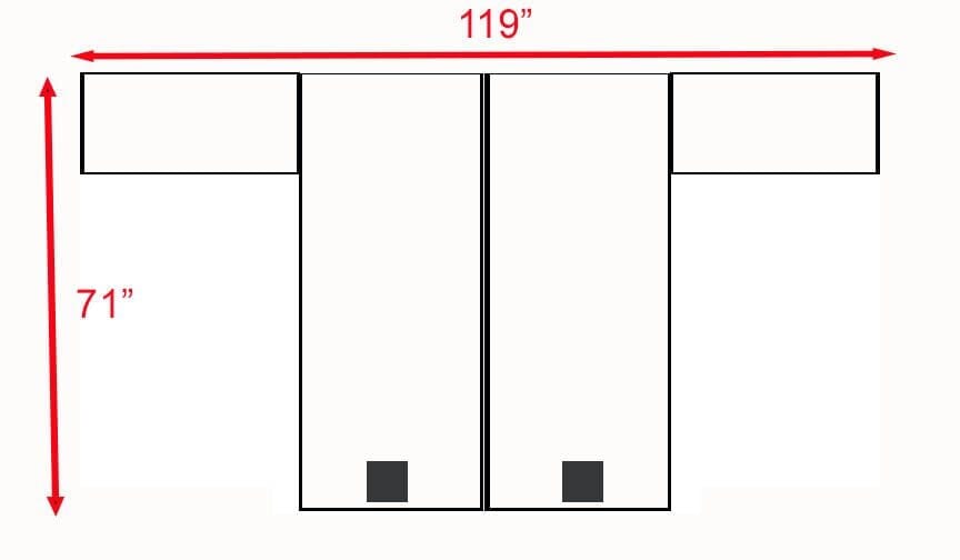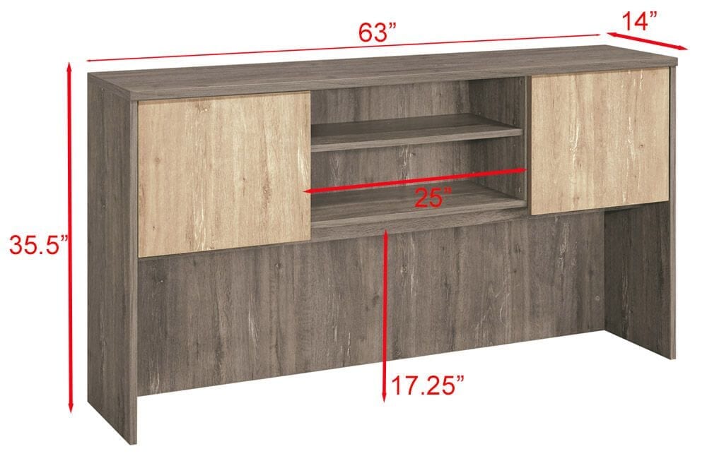 Just like the desks sold above but with larger desk surfaces. Workstation features a two-tone rustic laminate combination: Barn Oak and Driftwood. Each workstation includes a 71"W table desk that offers ample room for daily tasks and technology, ensuring both users have a spacious, comfortable place to work. For quick and convenient storage, each side is equipped with a 32" sliding-door cabinet. Above each desk, a matching 59" overhead storage hutch adds generous vertical storage without taking up additional floor space. Workstation Includes two Y14343, 71"W Table Desks, two Y14316, 32"W Sliding Door Cabinets and two Y14324, 59"W Storage Hutches. Measures 119"W x 71"D x 29-1/2"H to the desktop. Hutch measures 29-1/2"H. Ships unassembled. Shipping weight 546 lbs. PRICE INCLUDES SHIPPING! (Truck shipment - see Terms & Conditions.) IN STOCK!