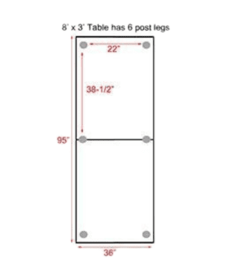 Measures 95" long x 36" wide x 40-1/2” high overall. Includes two 3' x 4' table tops with six cylinder legs. Seats a maximum of 8 comfortably. Shipping weight 182 lbs. Ships with legs detached. PRICE INCLUDES SHIPPING! (Truck shipment – see Terms & Conditions). IN STOCK!