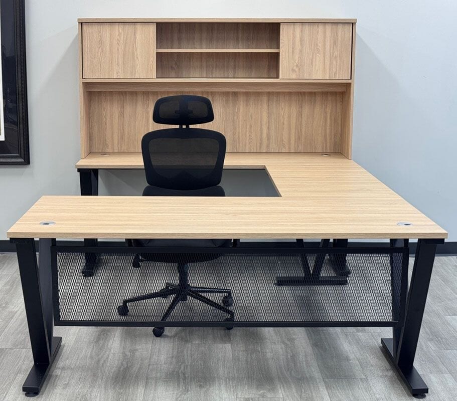 Beaumont Steel V-Leg Rectangular Front U-Shaped Desk with Hutch