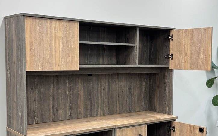 Contrasts Rustic 2-Person Workstation with Hutches - 10' x 6'