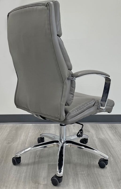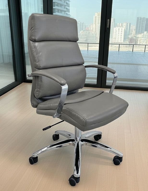 Chrome Classic Padded Leather Chairs in Fashion Gray, which feature a bright chrome frame that contrasts nicely against the soft gray bonded leather. This set is perfect for conference rooms that need to balance professionalism with inviting charm.
