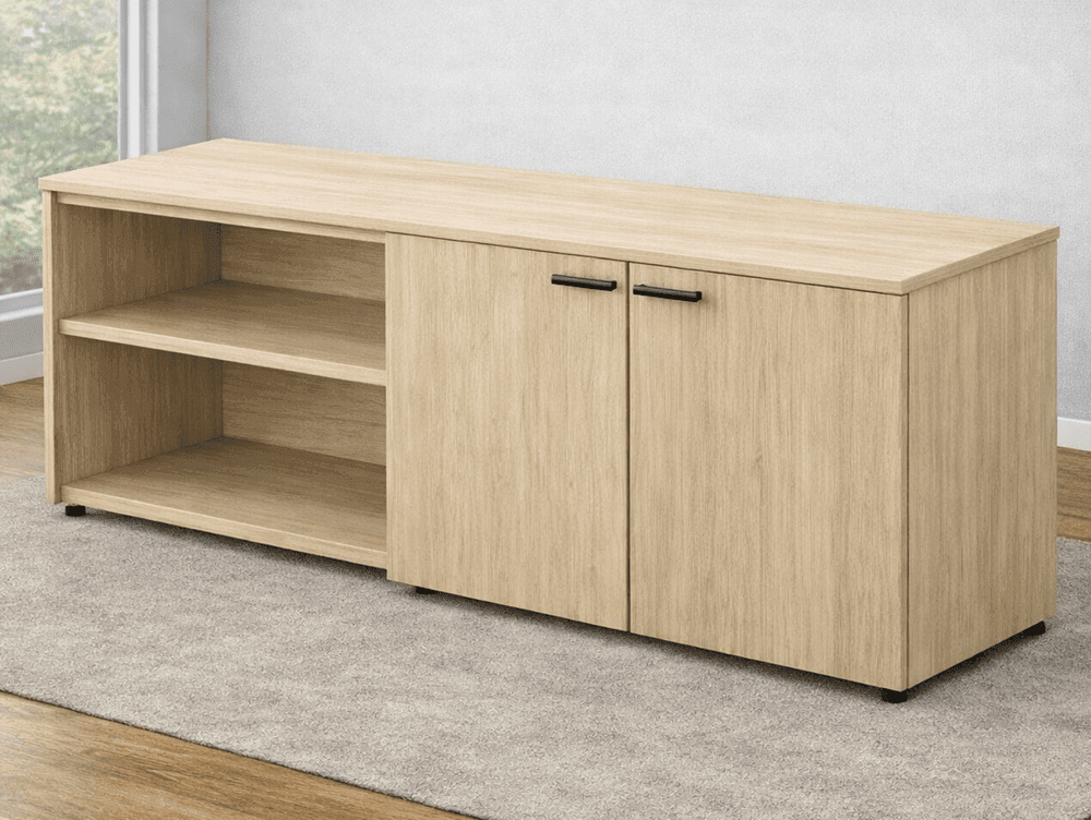 Shown in main photo underneath white hutch. Includes one open bookcase unit and one 2-door cabinet with common top. Measures 72"W x 18"D x 29"H. Ships assembled, just attach the top. PRICE INCLUDES SHIPPING! (Truck Shipment - see Terms & Conditions.) Please allow 8-9 weeks for delivery.