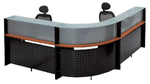 Even though SJ Storage is located in Mexico, over 2500 miles from Minneapolis, they chose a new reception desk for their front office from Modern Office. The L-Shaped Glass Top Reception Desk with Cherry desk top that they chose blends perfectly with their decor and company colors. It provides privacy for the user, but the perforated metal panels allow light to filter through to the desk top. The glass counter top provides a smooth writing surface at the perfect height for their customers to sign paperwork. This reception desk's industrial style is currently a hot trend in office furniture.