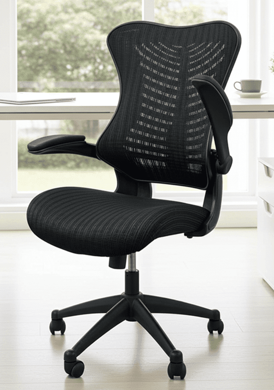 Beautiful design aesthetics and ergonomic comfort converge on this flexible multi-purpose office chair. Air-flo patterned mesh back and foam mesh fabric seat lend a completely high end appearance to this impressive office chair. Flip up armrests ensure that your chair will always fit under your desk.