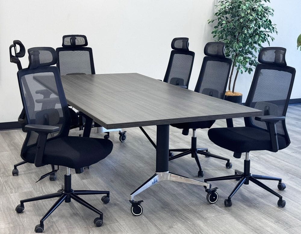 Included with this package are six Linear Mesh Black Ergonomic Chairs with Headrest that deliver breathable comfort and dependable support for long meetings and everyday use. Featuring a ventilated mesh back, contoured seat cushion, ergonomic headrest, and multi-adjustable armrests, these chairs help promote better posture and reduce strain throughout the day. With commercial-grade durability and a clean, modern look, they're an excellent value for professional conference and collaborative spaces.