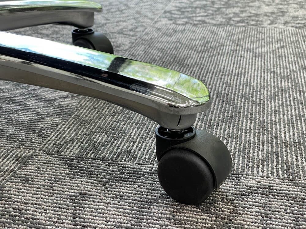 The chair's sturdy construction is complemented by smooth-rolling casters that enable seamless mobility across various surfaces, ensuring you can move effortlessly within your workspace without any disruption.