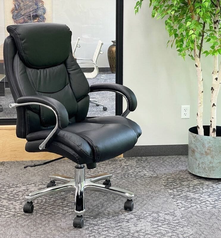 Professional 500 lbs. Capacity Black Leather Desk & Conference Chair w/ 24