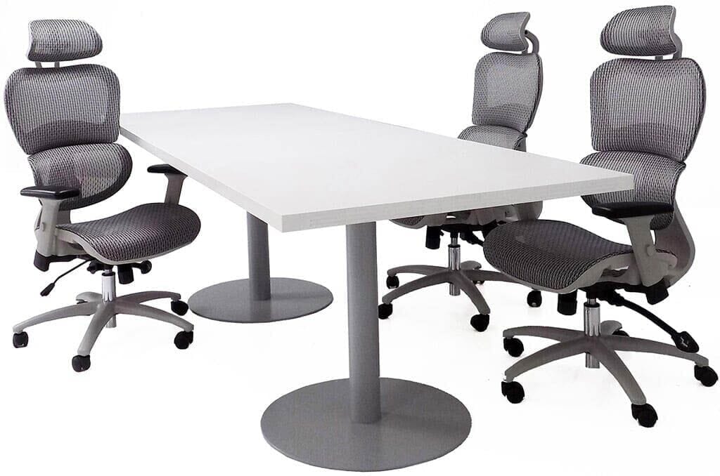 Use independently, or, extend any of the above tables with a 3' add-on section. Measures 47-1/4"W x 35-1/2"D x 29-1/2"H overall. Includes one table top and one disc base. Shipping weight 100 lbs. Ships with legs detached. PRICE INCLUDES SHIPPING! (Truck shipment - see Terms & Conditions). IN STOCK!